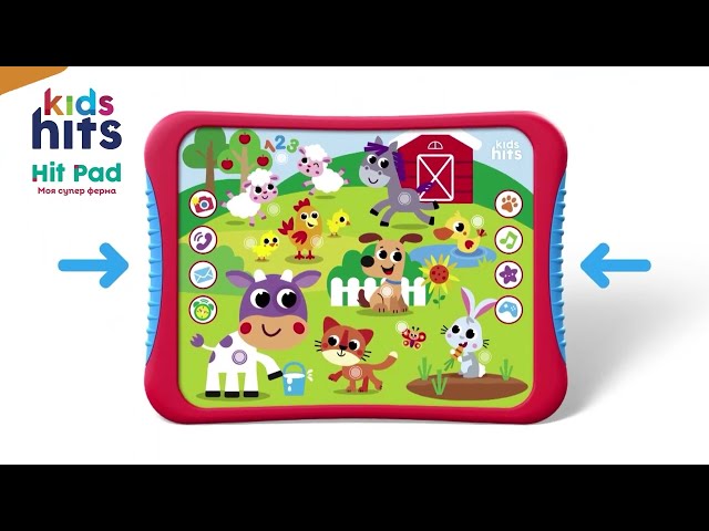 Унікальний інтерактивний планшет Kids Hits Моя супер ферма є дуже корисною іграшкою нового покоління. Малюк дізнається стільки нового і цікавого і здорово проведе час! Планшет розвиває пізнавальні навички дитини, логічні, сенсорні та музичні здібності. Планшет має 4 режими роботи: назви та голоси тварин;мелодії та звуки (5 мелодій);вірші;ігровий режим (вікторина).Всі кнопки на екрані сенсорні. Планшет озвучений українською мовою. Велика схожість зі справжнім планшетом робить цю інтерактивну іграшку однією з найулюбленіших. Є регулювання звуку. Кнопка включення і виключення. Зручний формат дозволяє брати іграшку з собою куди завгодно, і грати всюди. Розмір іграшки: 24 х 17 х 2 см. Живлення: працює від 3 x AAA батарйок, є у комплекті. Основні характеристики Артикул KH01/004Особливість Звукові ефекти, ІнтерактивнийТип товару Інтерактивні планшетиКраїна-виробник КитайЕлектроживлення (у комплекті) Габарити Розмір пакунку 4 x 27 x 25 смВага 350 гРозмір іграшки 1 x 24 x 17 см Рекомендації Вік 3 - 6 роківСтать Для хлопчиків, Для дівчатокКатегорія розвитку Уяви, Уваги, Логіки
