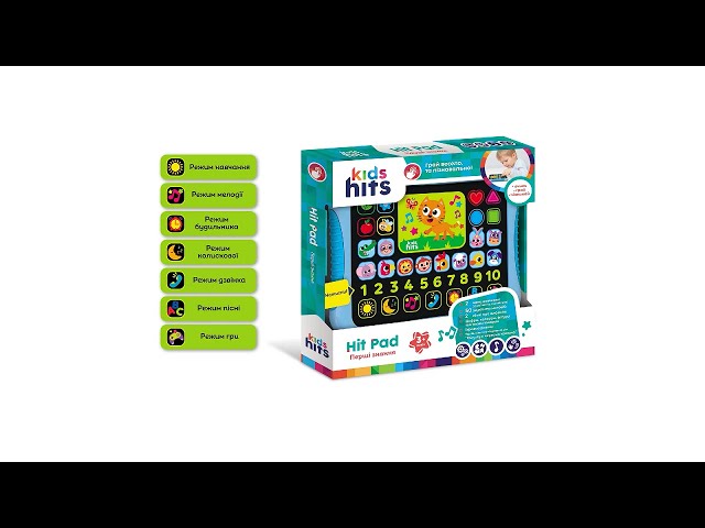 Унікальний інтерактивний планшет Kids Hits Перші знання допоможе дитині вчитися, пізнавати світ та цікаво провести час! Планшет розвиває у дитини когнітивні навички, логічні, сенсорні та музичні можливості. Розвиваючий планшет включає: 2 мови українську та англійську;50 звуків та мелодій;2 пісні про алфавіт ;цифри, кольори, фігури, назви та звуки тварин;ігровий режим.Планшет виготовлений із міцного АБС-пластику. Усі кнопки на екрані є сенсорними. На корпусі є регулювання звуку, а зручний формат дозволяє брати іграшку із собою куди завгодно та грати всюди. Розмір іграшки: 24 х 17 х 2 см. Живлення: працює від 3 батарейок типу ААА (що входять до комплекту). Основні характеристики Артикул KH01/002Особливість Звукові ефекти, ІнтерактивнийТип товару Інтерактивні планшетиКраїна-виробник КитайЕлектроживлення (у комплекті) Габарити Розмір пакунку 4 x 27 x 25 смВага 200 г Рекомендації Вік 3 - 6 роківСтать Для хлопчиків, Для дівчатокКатегорія розвитку Уяви, Уваги, Логіки, Математичних понять