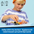 Надихайте на творчу гру з конструктором LEGO City Автівки — Будівельний навантажувач! Набір містить: мініфігурку будівельника;аксесуари.З додатком LEGO Builder вони можуть конструювати кожен набір більш упевнено: масштабувати, обертати в 3D й відстежувати прогрес за допомогою простих цифрових інструкцій. Основні характеристики Артикул 60483Кількість деталей 61Тематика Транспорт та технікаТип товару КонструкториВид транспорту НавантажувачіСерія CityКраїна-виробник Чехія ГабаритиРозмір пакунку 8 x 12 x 9 смВага 115 гРозмір іграшки 15 см Рекомендації Вік 5 - 10 роківСтать Для хлопчиків, Для дівчаток