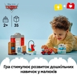 Дозвольте дошкільнятам піклуватися про улюблене складане іграшкове авто для перегонів за допомогою конструктору LEGO DUPLO Disney і Pixar Тачки Візит МакКвіна в гараж Дока. Цей конструктор переносить дошкільнят у світ мультфільму від Disney і Pixar Тачки, допомагаючи малюкам розвивати навички турботи через творчу гру. Творча гра починається, коли автомобіль Блискавка МакКвін з вереском проноситься через двері гаража цього ігрового набору конструктора автомобіля. Малюкам сподобається наближати й віддаляти автомобіль від гаража та штовхати двері, щоб вони відчинялися. Дошкільнята можуть розвивати навички дрібної моторики, використовуючи гайковий ключ, відкриваючи й закриваючи дверцята шафки та відʼєднуючи шланг на іграшковій автомийці, щоб змити бруд, що залишився на Блискавці МакКвін після перегонів. Цей конструктор розвиває емоційні навички, оскільки малюки уявляють, що вони відповідають за догляд за складаним іграшковим автомобілем і забезпечення його максимальної продуктивності. Складаний іграшковий гараж сягає понад 19 см заввишки й 48 см завширшки. Основні характеристики Артикул 10456Вид транспорту Гоночний автомобільТематика МультфільмиКількість деталей 35Тип товару КонструкториСерія DUPLOКраїна-виробник Китай ГабаритиРозмір пакунку 9 x 35 x 19 смВага 543 гРозмір іграшки 48 см РекомендаціїВік 2 - 4 рокиСтать Для хлопчиків, Для дівчаток