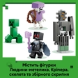Надихайте на творчу гру з конструктором LEGO Minecraft Блідий сад! Набір містить: 4 фігурки LEGO Minecraft: скрипень, Людина-метелик, Кріпер і скелет;аксесуари.Бліде дубове дерево містить дорогоцінну смолу і серце скрипня. З додатком LEGO Builder вони можуть конструювати кожен набір більш упевнено: масштабувати, обертати в 3D й відстежувати прогрес за допомогою простих цифрових інструкцій. Основні характеристики Артикул 21586Тематика Комп'ютерні ігриКількість деталей 243Тип товару КонструкториСерія MinecraftКраїна-виробник Чехія Габарити Розмір пакунку 6 x 26 x 19 смВага 405 гРозмір іграшки 12 см Рекомендації Вік 7 - 12 роківСтать Для хлопчиків, Для дівчаток