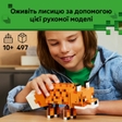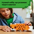 Надихайте на творчу гру з конструктором LEGO Minecraft Лисиця! Набір містить: фігурку тварини з Minecraft;аксесуари.Лисиця для гри й демонстрування має рухомі лапи, шию й голову, а також змінні очі. З додатком LEGO Builder вони можуть конструювати кожен набір більш упевнено: масштабувати, обертати в 3D й відстежувати прогрес за допомогою простих цифрових інструкцій. Основні характеристики Артикул 21588Кількість деталей 497Тип товару КонструкториТематика Комп'ютерні ігриСерія MinecraftКраїна-виробник Чехія Габарити Розмір пакунку 8 x 26 x 22 смВага 639 гРозмір іграшки 24 см Рекомендації Вік 10 - 14 роківСтать Для хлопчиків, Для дівчаток