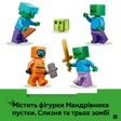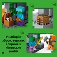 Надихайте на творчу гру з конструктором LEGO Minecraft Підземелля зомбі! Набір містить: мініфігурку Мандрівника пустки, Слизня та 3 зомбі;аксесуари.Функції сюжетної гри включають обертову камеру й ручний механізм для імітації обвалу скелі. З додатком LEGO Builder вони можуть конструювати кожен набір більш упевнено: масштабувати, обертати в 3D й відстежувати прогрес за допомогою простих цифрових інструкцій. Основні характеристики Артикул 21587Тип товару КонструкториКількість деталей 284Тематика Комп'ютерні ігриСерія MinecraftКраїна-виробник Чехія ГабаритиРозмір пакунку 9 x 19 x 26 смВага 533 гРозмір іграшки 21 см Рекомендації Вік 8 - 12 роківСтать Для хлопчиків, Для дівчаток