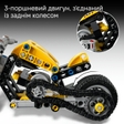 Надихайте на творчу гру з конструктором LEGO Technic Жовтий мотоцикл! Включає кермо та 3-поршневий двигун, з'єднаний із заднім колесом. Подивіться, як працюють різні частини мотоцикла, за допомогою цієї STEM-конструктора. Діти можуть насолоджуватися інтуїтивно зрозумілим процесом складання в додатку LEGO Builder, масштабуючи та обертаючи зображення за допомогою 3D-інструкцій, зберігаючи та відстежуючи прогрес під час складання. Основні характеристики Артикул 42225Вид транспорту МотоциклТематика Транспорт та технікаКількість деталей 151Тип товару КонструкториСерія Technic Габарити Розмір пакунку 6 x 16 x 14 смВага 193 гРозмір іграшки 16 см Рекомендації Вік 7 - 18 роківСтать Для хлопчиків, Для дівчаток