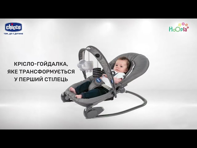 Chicco Hoopla – це комфортний шезлонг з підвісними іграшками від народження до 6 місяців (до 9 кг) та м'яке крісло для відпочинку дитини від 6 місяців (до 18 кг).