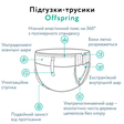 Фішки Offspring11 суперабсорбуючих шарів та новітня запатентована технологія подвійного поглинання з використанням кращого японського суперабсорбенту, який миттєво затримує і не пропускає вологу.12 годин сухості та захисту від протікання* – екстрамʼяке внутрішнє покриття з 3D-тисненням зберігає попу дитини сухою.Нетоксичні – без латексу, токсичних чорнил, ароматизаторів та речовин, що маскують запах.Стерильні – екстрам'який внутрішній і зовнішній шари оброблено гарячою парою за технологією Hot Air®.Липучки без гострих країв можуть застібатися і розстібатися безліч разів – захищають ніжну шкіру дитини від подряпин.Удосконалений супереластичний пояс з полімерного спандексу та подвійні бортики, що захищають від протікань.Без індикатору вологості, який не відповідає екологічним стандартам Offspring.Максимально повітропроникні – ультрадихаючі шари створюють максимальний комфорт і дозволяють шкірі дихати.Спеціальна наклейка на задній частині – для легкої утилізації використаного підгузка.Легко вдягати та знімати: трусики потрібно просто натягнути, а для зняття – легким рухом розірвати боковий шов.
